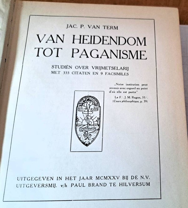 - Titel: Van heidendom tot paganisme. Studiën over vrijmetselarij. Met 333 citaten en 9 facsimiles