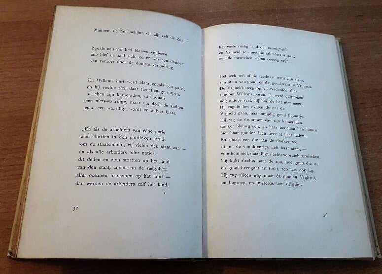 - Bijzonderheden: 1906, 1e druk, formaat 13,5x20 cm., gebonden in wit linnen met goudopdruk. Wel iets van verkleuring aan randen binnenwerk, rug en platten, maar er is erg weinig aan te merken aan de staat van dit boek, binnenwerk is opvallend fris